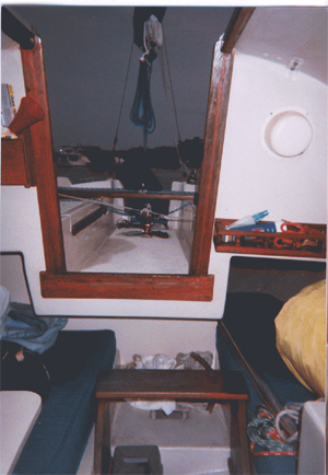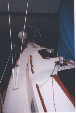 These are some photos of Pegasus. She is a 1973 Irwin 23, purchased summer of 2001 from a very nice couple up in Stratford, Connecticut. The previous owners used her mostly for racing, and so there are some modifications that were made to facilitate this, such as running all the halyards back to the cockpit. She came fully outfitted with all sails (including a spinnaker), and an outboard motor.