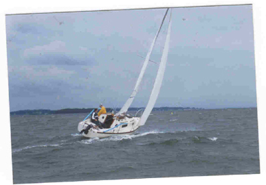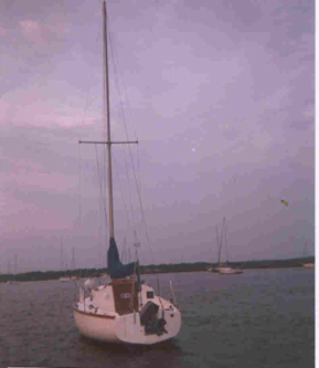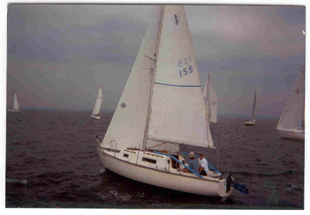 For those who like to know such things, she has a swing centerboard/keel, which draws 2' 6" when up and 5' 9" when down. She has a LOA of 23', LWL 19' 2", and the Long Island Sound racing association assigns a PHRF rating of 231.